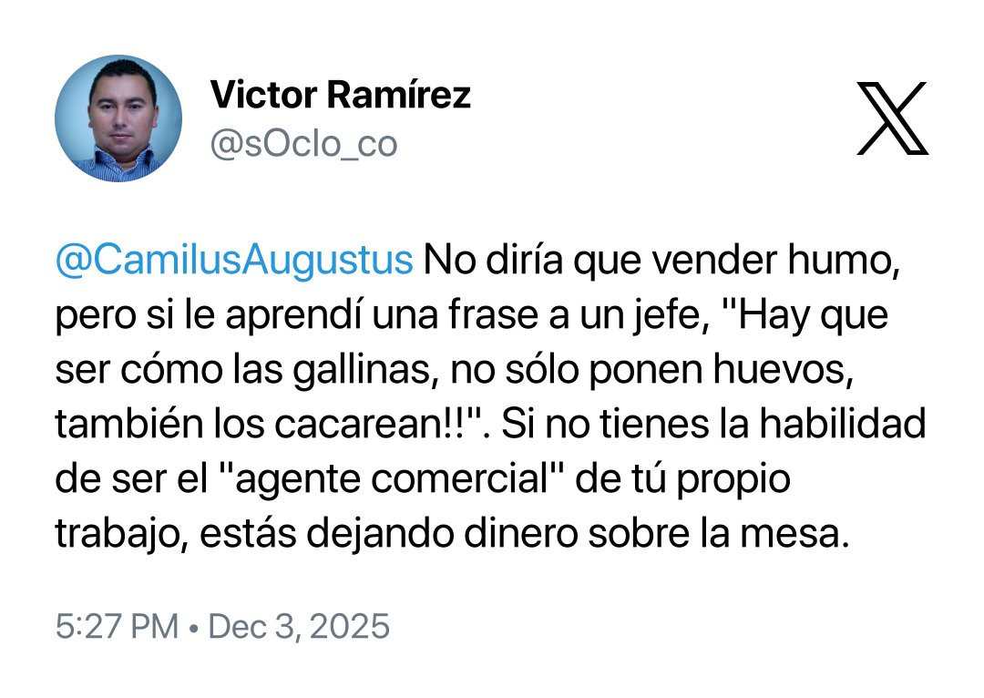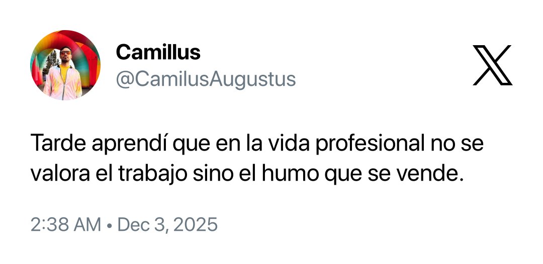 Esa frase despertó un buen debate en X (Twitter). Para algunos es una injusticia: quienes “venden humo” ganan visibilidad mientras quienes entregan resultados cargan con más trabajo. Otros prefieren matizarlo: no es humo, es saber comunicar, posicionarse y traducir impacto en percepción.